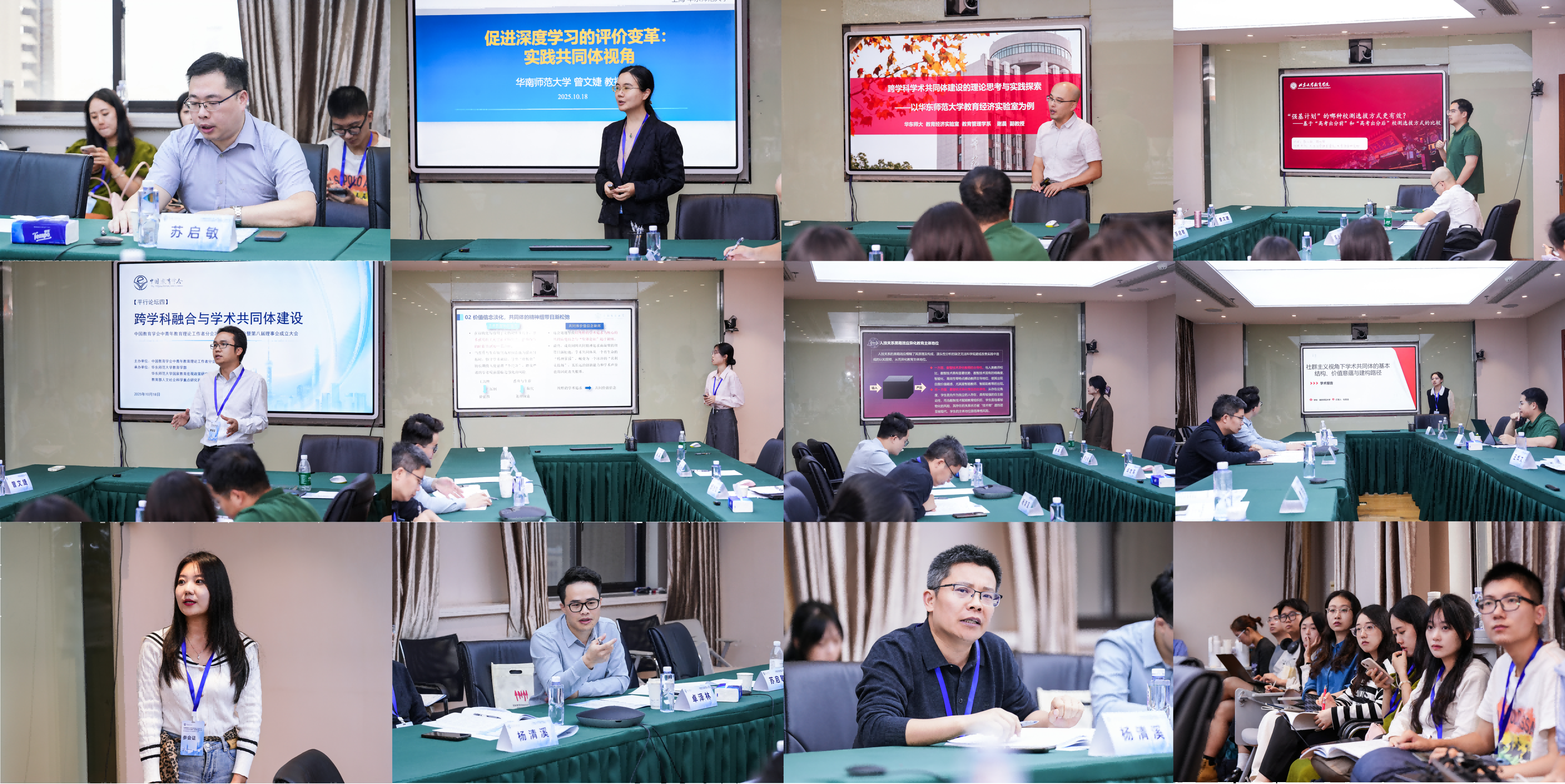 论坛第一阶段。华南师范大学曾文婕教授从实践共同体视角探讨深度学习评价改革,提出“4域12维24要素”评价框架。华东师范大学谢晨副教授结合教育经济实验室建设经验,分析跨学科合作的制度挑战,呼吁完善成果认定机制。北京大学博士生丘世琛基于“强基计划”数据,指出高考前校测在识别学生学术志趣方面的短期优势。李林教授在点评中提炼三场报告的共性,强调共同体应基于内在认同,并就深度学习本质、招生长期效应等提出反思。